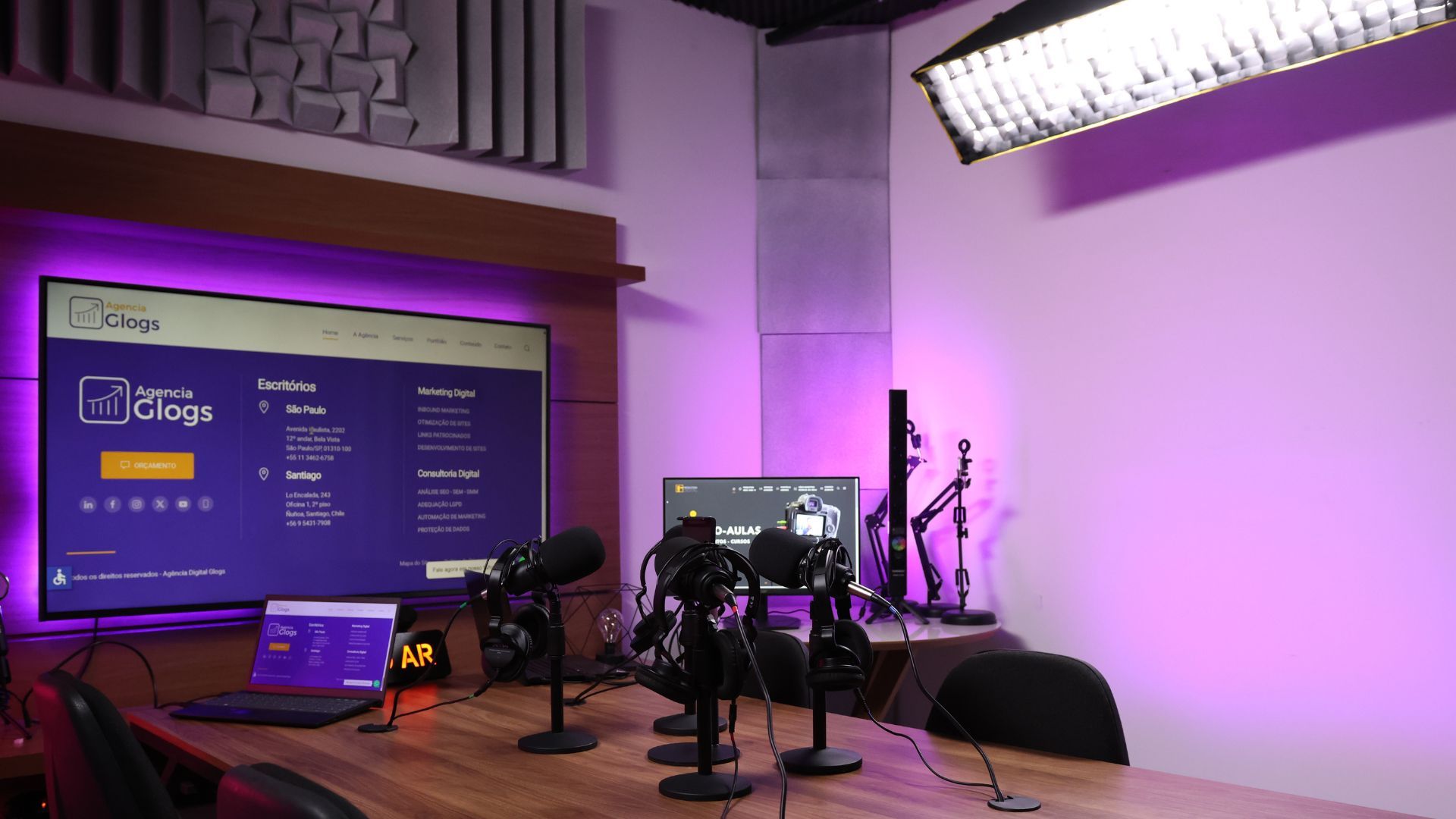 Nos Estúdios Glogs, cada detalhe foi pensado para garantir qualidade técnica e conforto.