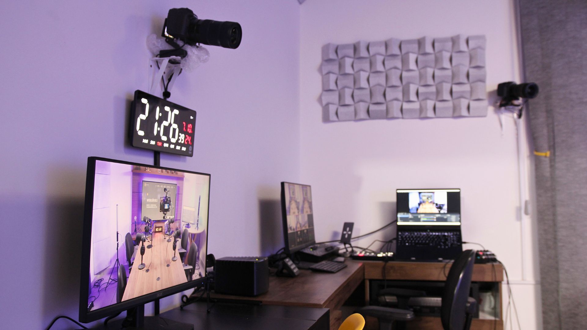 Do microfone à câmera, da ideia ao corte final — nossos estúdios são o seu palco para podcasts, vídeoaulas e lives com qualidade profissional.