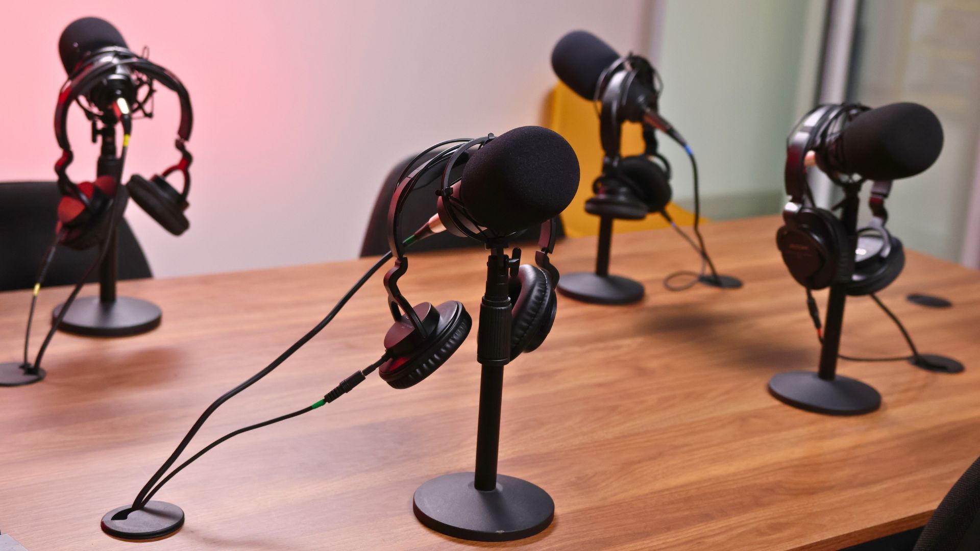 Mesa de gravação de podcast profissional